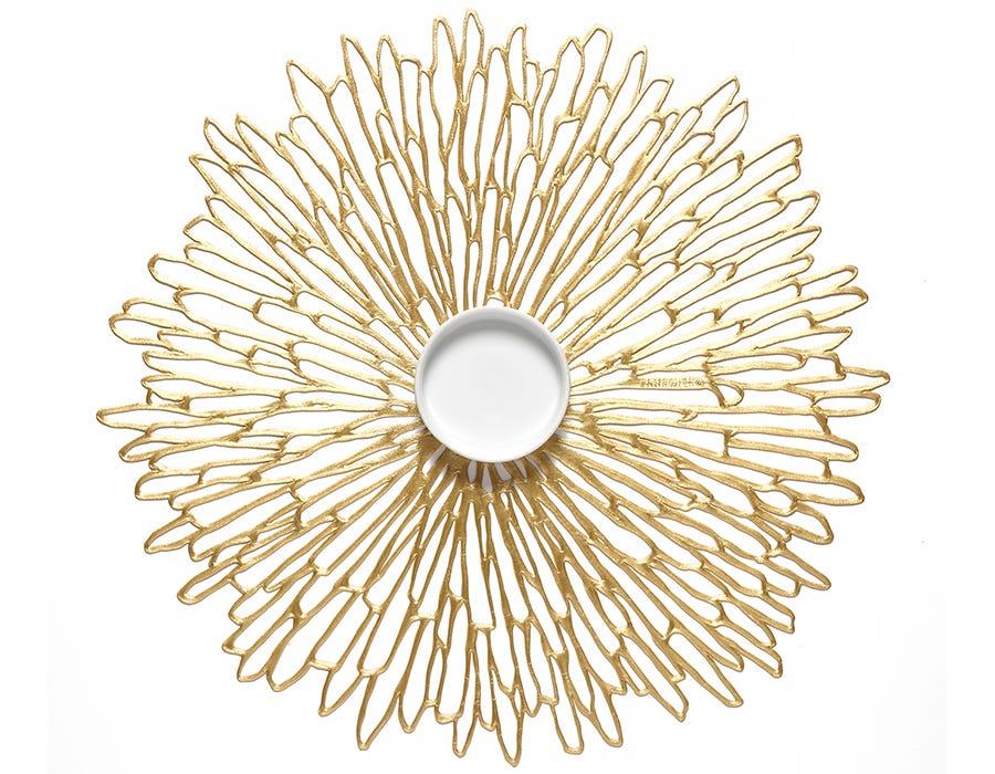 Bloom is a fresh interpretation of florals with the graphic refinement of a contour line sketch and a modern palette of metallic hues. Flexible openwork placemat can also function as a charger, acting as a decorative base for whatever is placed on top.