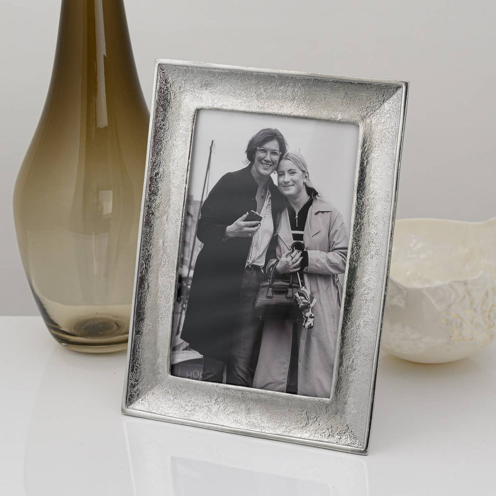 Handmade cast pewter photo frame. Kingston Photo Frame, classic, elegant and timeless, with the distinctive Lancaster and Gibbings look. Available in a choice of 3 sizes. This photo frame can be displayed in either portrait or landscape.This item is supplied boxed.
