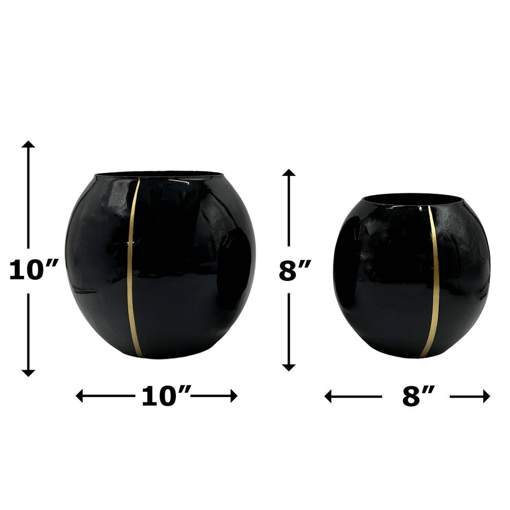 A harmonious fusion of style and functionality, each vase boasts a sleek black finish and classic rounded jug design. Versatile and chic, this set is ideal for displaying your favorite blooms, effortlessly enhancing any space with its timeless appeal. Each set comes with a large and small vase.