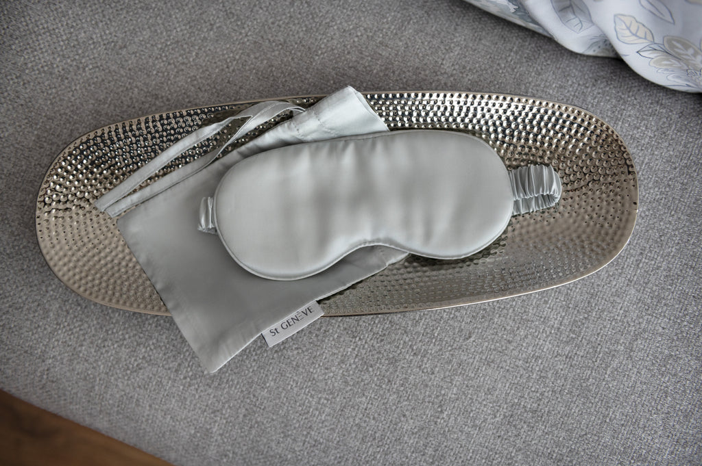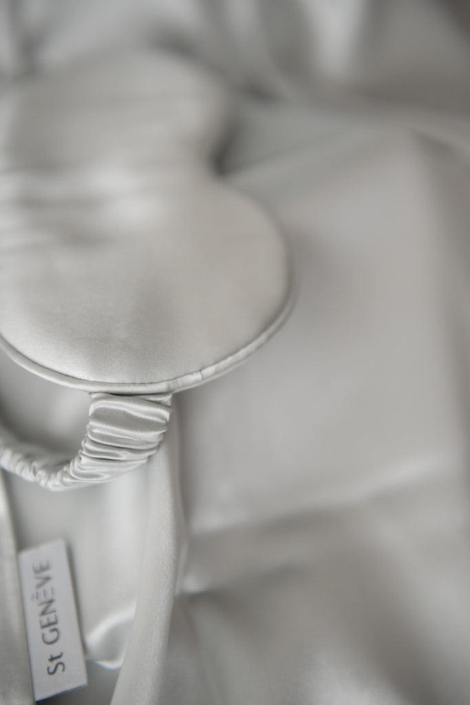 For a relaxed night's sleep, rest your eyes in the softness of silk. While the mask obstructs the light, you will fall asleep faster and deeper. The smooth exterior silk will care for your delicate skin, while the silk filling allows it to breathe. Improve your sleep quality and facial skin care with the St Genève Sleep Mask.