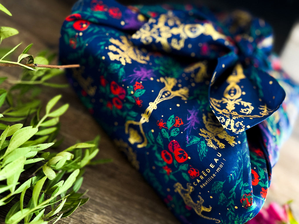 A couple of knots is all it takes to transform these exquisite silky cotton wraps into the perfectly presented gift. Each designed with a contemporary twist on classic motifs, they are designed to be reused afterwards, as a scarf, bag, or simply for another present.
