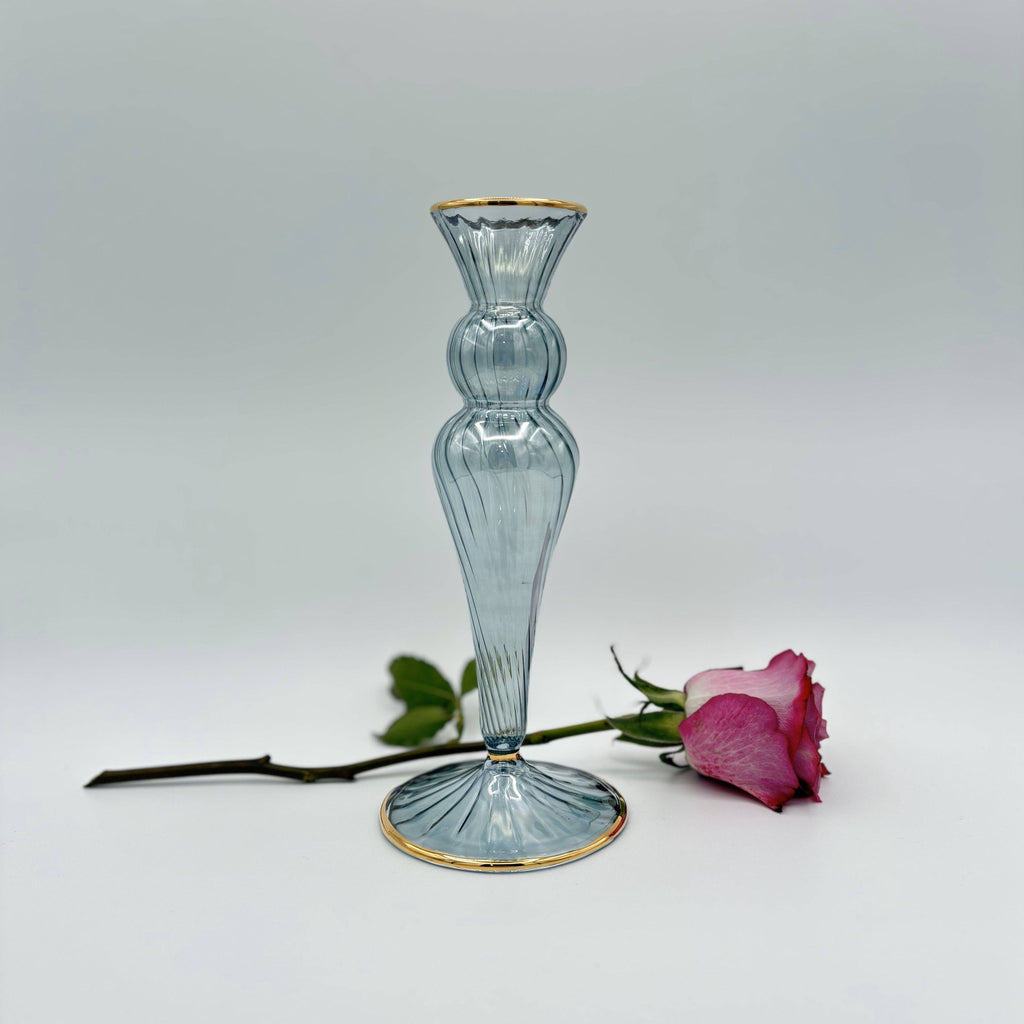 This delicately created hand-blown glass vase is artfully handcrafted by skilled glass blowers in the heart of old Cairo, Egypt. The art of glass blowing began in Egypt at least in the 3rd Century A.D. based on a poem written on papyrus that describes the technique.