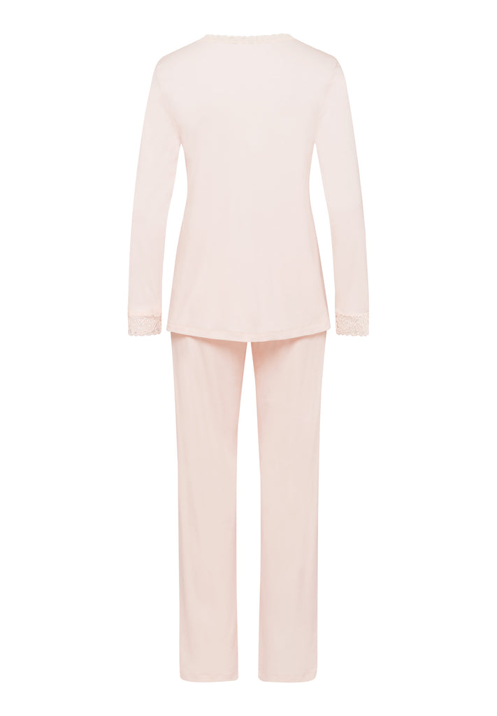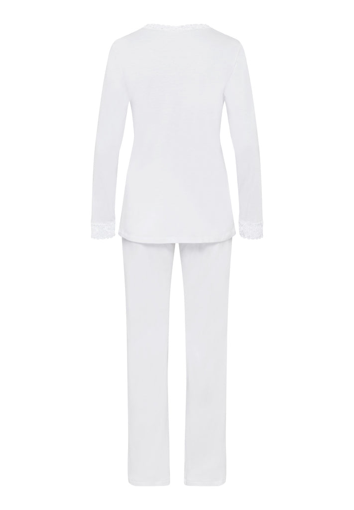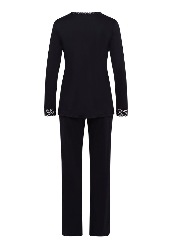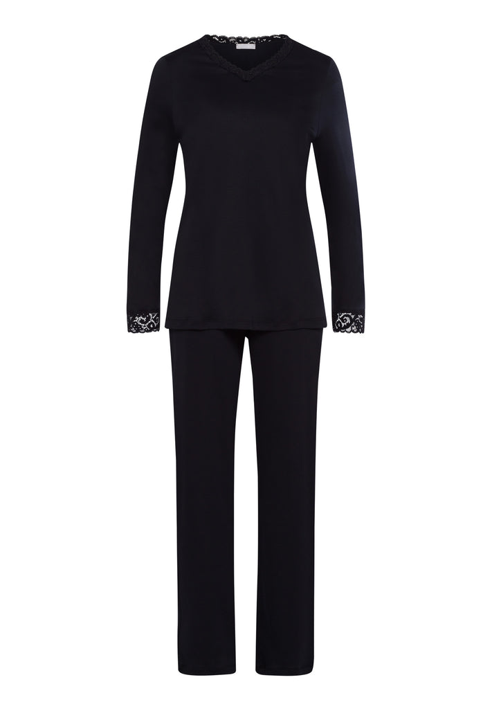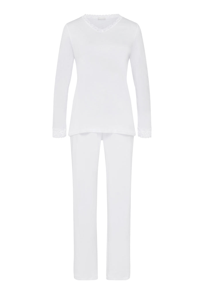 These HANRO pyjamas from the Moments series are particularly stylish and comfortable - so they always make a good choice. The sleepwear set is made of high-quality interlock made in Austria. The top is adorned with pretty lace along the V-neckline and long sleeves. The long pyjama bottoms are understated and have a straight leg.